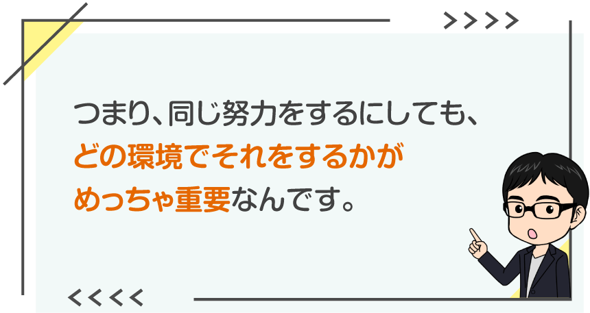 同じ努力をするにしても、どの環境でそれをするかで結果はまったく変わってきます。