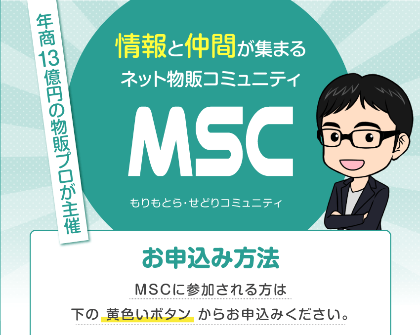そういう方は、このページの後半でご紹介しているネット物販コミュニティ「MSC」をご利用いただければと思います。
